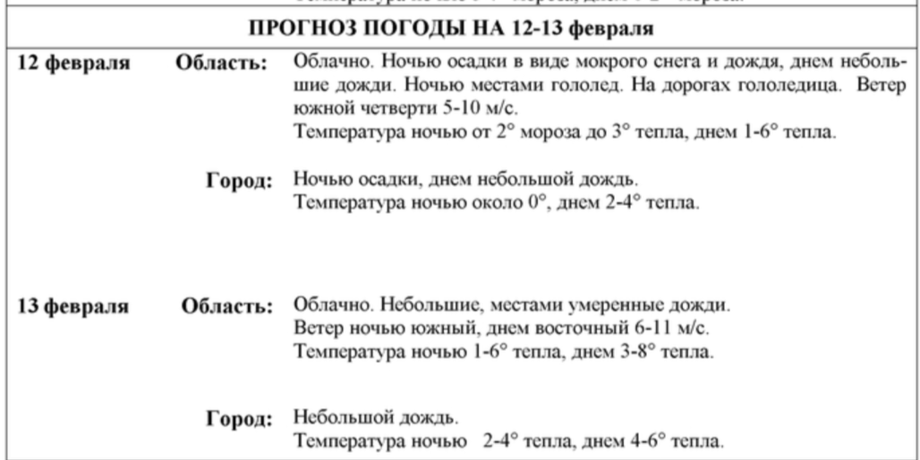 Будет дождливо. Следящая неделя подарит местным жителям плюсовую температуру и осадки. Подробнее о том, какую погоду принесут нам ближайшие дни, рассказали в Воронежском центре по гидрометеорологии и мониторингу окружающей среды. В ночь на понедельник, 12 февраля, синоптики прогнозируют гололед, мокрый снег и дождь в Воронежской области. Температура составит от -2 до +3 градусов. Днем в регионе ожидаются небольшие дожди, потеплеет до +6. На дорогах будет гололедица. В ночь на 13 февраля столбик термометра по области будет варьироваться от 1 до 6 градусов тепла. Днем температура поднимется до +8. Пройдут небольшие, а местами умеренные дожди. Филипп Котов