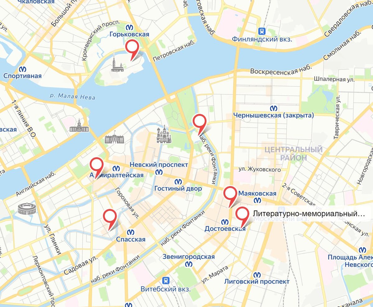 Решила собрать все важные адреса Достоевского на карте: