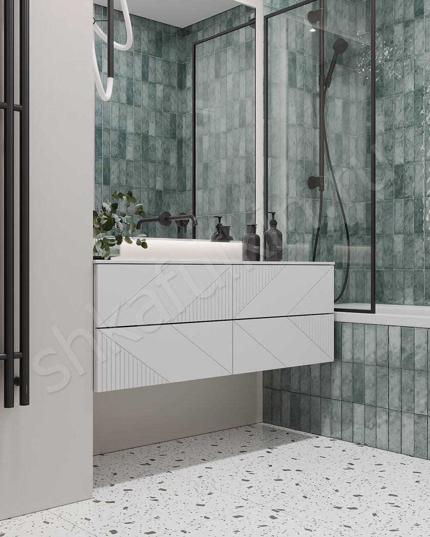 К слову, отличным выбором для ванной комнаты станет глазурованная керамическая плитка, так как она дополнительно защищена от влажности благодаря слою глазури. Это помогает предотвратить проникновение воды и обеспечивает более лёгкую очистку поверхности.