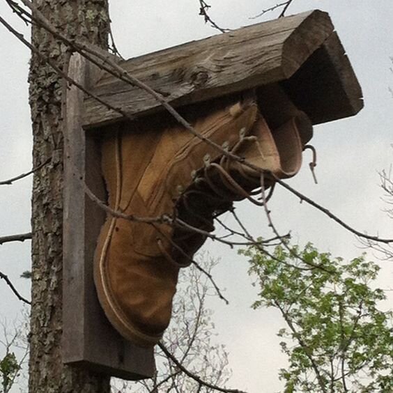С наступлением весны каждый раз призадумывался изготовить скворечник. Просто так, для души, чтобы поселились в нём птички и жили рядышком. Но как-то с таянием снега появлялись другие заботы и было не до этой затеи. Но неожиданно увидел такой "птичий домик" и понял, что проблема скворечника решена, у меня этой ненужной старой обуви полным-полно... Сегодня хочется предложить вашему вниманию незамысловатые поделки, которые несомненно облегчают нашу жизнь. Или, во всяком случае, поднимают настроение и вызывают улыбку: Всё гениальное просто - обычный накопитель дождевой воды, излишки уходят куда-то под землю, а нужное количество всегда имеется под рукой). \\\\\\\\\\\\\\\\\\\\\\\\\\\\\ Не знаю, что это за дерево, но здесь явно проявилась чья-то фантазия и затейник немного подправил в нужное русло... получился забавный улыбчивый человечек с привлекательным носом. \\\\\\\\\\\\\\\\\\\\\\\\\\\\\\ Это, по-видимому, ключница. И чтобы жена не таскала ключи мужа, они должны висеть(торчать) в строго