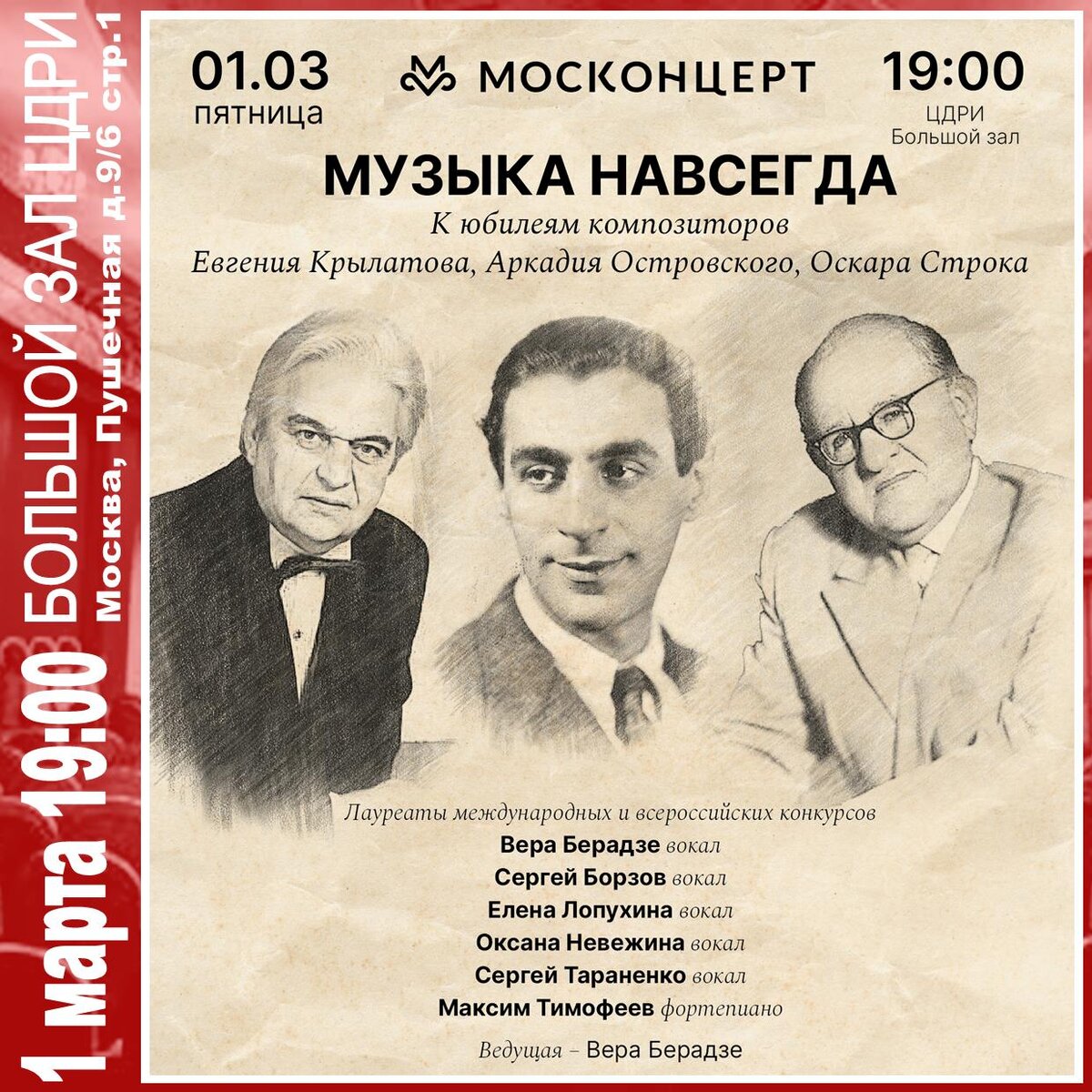1 марта, (пт) 19:00 — Большой зал ЦДРИ «Музыка навсегда» (6+)