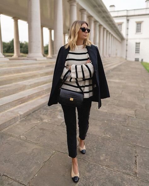 Эти великолепные балетки весьма универсальны благодаря уникальному сочетанию двух цветов. Это одна из тех комбинаций, которые мы всегда не решаемся носить. Но когда у вас есть такая вещь, как эти туфли на плоской подошве, которая сочетает в себе два цвета … это очень просто! Такие балетки идеально сочетаются с джинсами любого стиля: джинсами скинни, джинсами-клеш, укороченными джинсами и т. д. Они также будут красиво смотреться с юбками, брюками, брюками до щиколотки и т. д.
