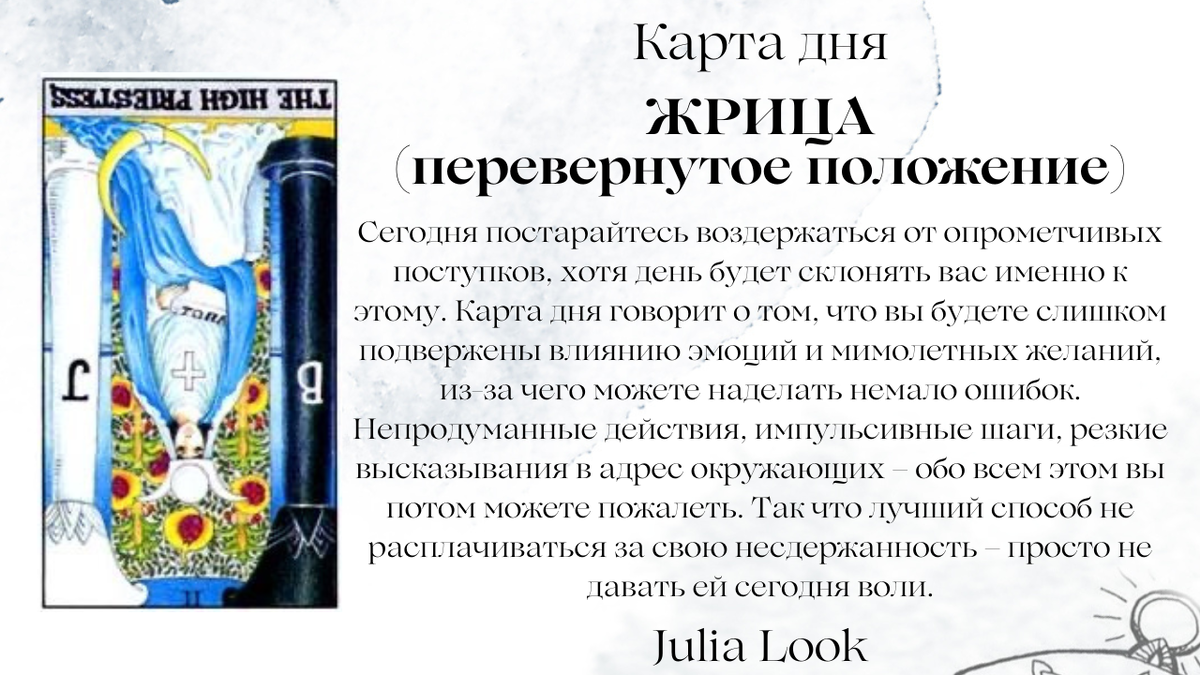 КАРТА ДНЯ ТАРО - АРКАН ЖРИЦА перевернутый
