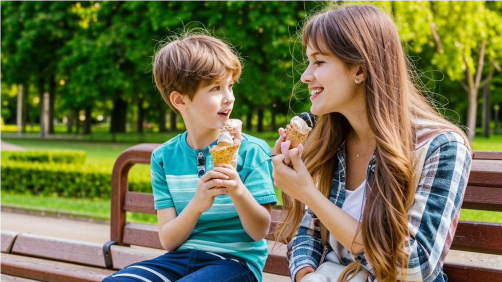 В один прекрасный солнечный день, Лена, незамужняя женщина немного за тридцать, находилась в отпуске и непреднамеренно оказалась в удаленном районе города, где никогда не бывала. Она уютно устроилась на лавочке у маленького сквера, наслаждаясь нежным мороженым с клубничным сиропом. Неожиданно её внимание привлекли громкие крики рядом — группа мальчишек издевательски дразнила и толкала одного из сверстников. Не в силах оставаться безучастной, Лена бросила мороженое и бросилась на защиту мальчика, разгоняя хулиганов. Один из обидчиков даже получил по спине её сумкой. Мальчику, у которого был разбитый нос, Лена с сочувствием протянула платок. Он смущенно вытер платком разбитый нос и поблагодарил её: «Спасибо!» «Не за что! Как я могу связаться с твоими родителями? Может, я позвоню твоей маме?» — с заботой спросила она. Лена действительно позвонила, но мама была занята и смогла бы приехать только через час-полтора. Не желая оставлять мальчика одного, она решила отвести его в кафе на обед.