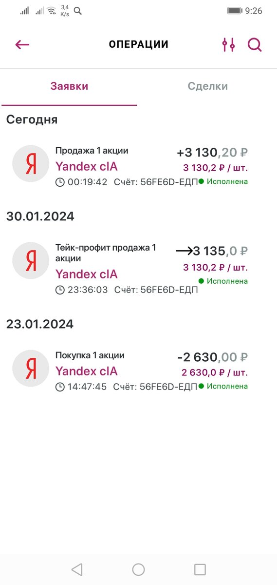 Доброго времени суток, дорогой читатель. Последнее время для написания статьи нужен повод. Пару недель назад он появился, но только сейчас дошли руки. Мы же любим показать удачные действия 😁. Особенно красиво было на следующий день, когда цена упала до 3030 рублей. Откупай обратно и будет у тебя акция и 100 рублей в придачу. Но... Не так весело стало когда котировки занесли за 3300 руб. И не известно, сколько они будут стоить завтра. На вновь открытый ИИС я упорно покупаю облигации. В общей сложности 7 компаний, 18 бумаг. Примерно на 18 тысяч рублей. Со всех этих бумаг до 02.05.24 купонами я получу 537, 32 руб. Сложил все заявленные выплаты и получил такой результат. Так как эти деньги я всё равно реинвестирую на ИИС, то логично прибавить ещё 13% так как налог с них забрали ввиду того что приходят они на отдельный счёт. 69, 85 и всего получится 607, 17 рублей. И рядом две записи : покупка 2630 рублей и продажа через неделю 3135 рубля. На 500 рублей дороже. Не поторпись, было бы 700