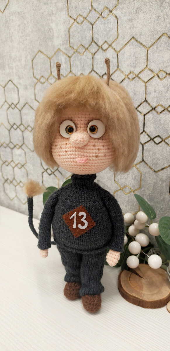 Всем привет! Много ли найдется здесь людей, который помнят мультфильмы 13 чертенок и Шиворот-навыворот? Ну вот и узнаем) Попросили у меня недавно сделать такого чертенка, не скажу, что добилась большого сходства. Но как отдельная игрушка мне результат очень нравится! После того как сделала фото, добавила еще уши. С ушами фотки не сохранились. Игрушка сложная, куча всяких техник. * Одежда связана спицами. * Игрушка полностью на проволочном каркасе, гнется все, включая рога. А голова на шарнире, может крутиться на 360 градусов. * Волосы из вычесанной шерсти, здесь на одну прическу у меня ушло около 5 часов! * Белки глаз из глины. * Тонировка (глаза и веснушки, слегка рот) Ростом вышел около 26 см. Пряжа хлопок+акрил, пряжа для волос шерсть+акрил. Наполнитель холлофайбер. Всего на игрушку ушло немногим меньше 25 часов чистого рабочего времени! Спасибо за внимание) Больше моих работ можно увидеть в вк, ссылка на который указана в шапке профиля. Всем БОБРА!!! Пост автора Boberka13. Коммент
