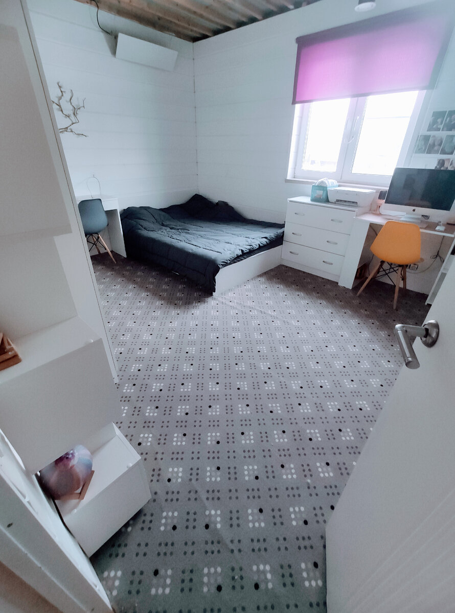 Продолжаем румтур. Сегодня покажу нашу с дочкой «берлогу» или просто спальню. Перемен немного, но они все добавили +100 баллов к общему комфорту: у двери появился стеллаж, оформила рабочее место и приобрела теплое одеяло. Заходим? Эта комната мне изначально нравилась меньше всего, зато теперь все наоборот. Тут я отдыхаю, работаю, привожу себя в порядок и даже тренируюсь. Открытый стеллаж должен был сыграть роль фонового декора, но очень пригодился в быту. Из чемодана дочка книги доставала без энтузиазма, зато теперь каждый вечер бежит за новой книгой. Сейчас шкафы совсем не в моде. В трешке у меня были закрытые гардеробные, но в доме я вернулась к классике - закрытым шкафам. Они идеальны для хранения, если у вас большая семья. Главное распорядиться доступным пространством с умом. В первом шкафу мужчина одежда, во втором — моя. В третьем — часть отдана под платья и кардиганы. Но основное его назначение — хранение запасов канцелярии, документов и уходовых средств. В нашем случае антн