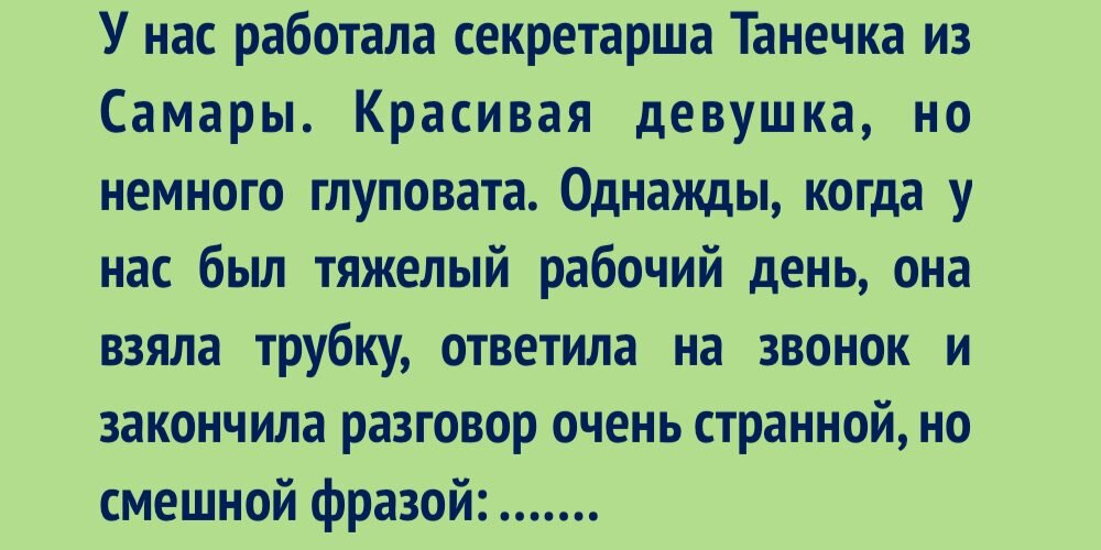 Вас ждут истории, которые подарят улыбку и хорошее настроение на весь день. Погружайтесь в этот мир вместе с нами и наслаждайтесь приключениями, полными юмора и веселых ситуаций! Добегалась В детстве меня заставляли есть фразой: “Давай, доедай! Либо кусочки будут бегать за тобой!”. Вот, я подросла и вешу 100 килограммов. Догнали кусочки, все же. Присаживайтесь Поздний вечер, метро едет раз в 10 минут. Я спешу, влетаю в вагон в последнюю секунду, двери закрываются за моей спиной, и они защемляют мои длинные волосы резиновыми накладками. Вагон почти пустой, а я стою у дверей, волосы в дверях. Это заметил парень и сказал: "Девушка, почему вы стоите? Присаживайтесь!". В общем, мы потом всю дорогу смеялись. Схитрила Меня попросили посидеть с племянницей, ей 5 лет. Она предложила играть в прятки. Я спряталась в кровати и так лежала минут 5, но я поняла, что никто меня не ищет. Наконец, выйдя из укрытия, обнаруживаю ее на кухне, угощающую себя тортом из холодильника… Все гораздо серьезнее Дав