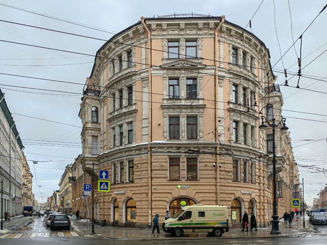 Писал я недавно заметку про отель в доходном доме Галунова... Но не показал вам одну интересную деталь этого здания, а именно парадную лестницу. Исправим эту оплошность сегодня! Вообще, если взглянуть на здание с Невского проспекта, то становится понятно, что конфигурация либо лестницы, либо квартир, расположенных в этом доме, должна быть необычной. В квартиры у нас доступа нет, а вот по ступеньках пройтись мы сможем. Это одна из самых необычных лестниц Петербурга - очень широкая, имеющая несколько изгибов и увенчанная световым фонарём. Каждый этаж имеет красивую чугунную опору. Ну и прекрасный ряд балясин органично дополняет картину! Историческую справку давать снова не буду, потому что пару слов сказал ранее. Также о здании вы можете почитать на архитектурном сайте Ситиволс. Отмечу, что в этой парадной я побывал во второй раз. Впервые - 21 июня 2016 года с другом. А теперь с женой. В этот раз, правда, нам попалась местная жительница, которая не стала в ответ здороваться, а сказал
