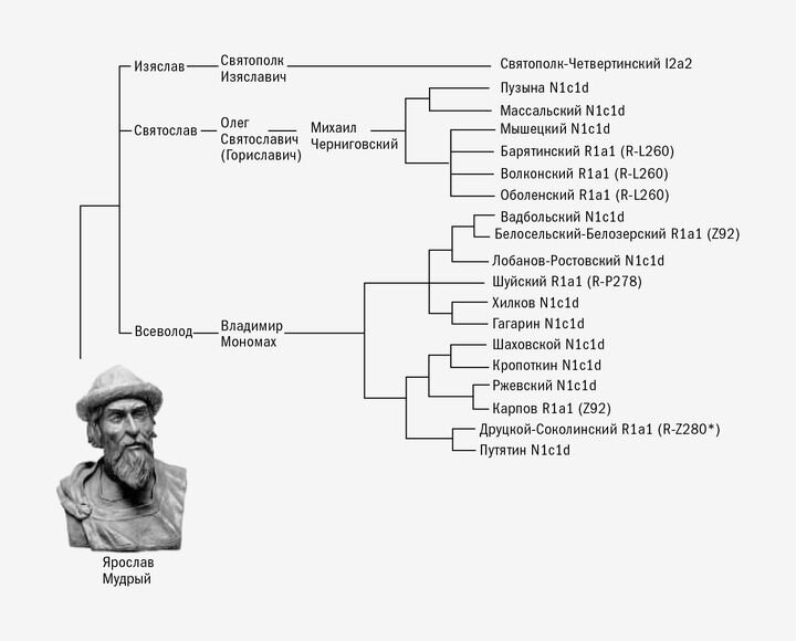 Во-вторых, в русских и скандинавских средневековых источниках также есть аргументы в пользу того, что представители ветви Рюриковичей-Мономашичей (с Y-гаплогруппой N1c1) не были настоящими потомками Рюрика. Потому что в исландских сагах, посвященных отношениям между Скандинавией и Россией в IX-XIII вв., есть четкие указания на тайную историю любви между норвежским королем Святым Олафом и принцессой Швеции Ингегерд Олофсдоттер, которая была женой русского князя Ярослава Мудрого. Во время своего визита в Россию в 1028-1029 годах Олаф снова встретился с Ингегерд, и после этого визита Ингегерд родила мальчика по имени Всеволод (который позже стал отцом Владимира Мономаха, основателя ветви Рюриковичей-Мономашичей). Если бы он на самом деле был сыном не Ярослава Мудрого, а святого Олаф, это означает, что центральная для русской истории ветвь Рюриковичей-Мономашичей (состоявшая из всех московских князей и первых царей) фактически не имела прямой генеалогической связи с Рюриком, и в этом смысле была не Рюриковичами, а своего рода династией Святых Олафов.