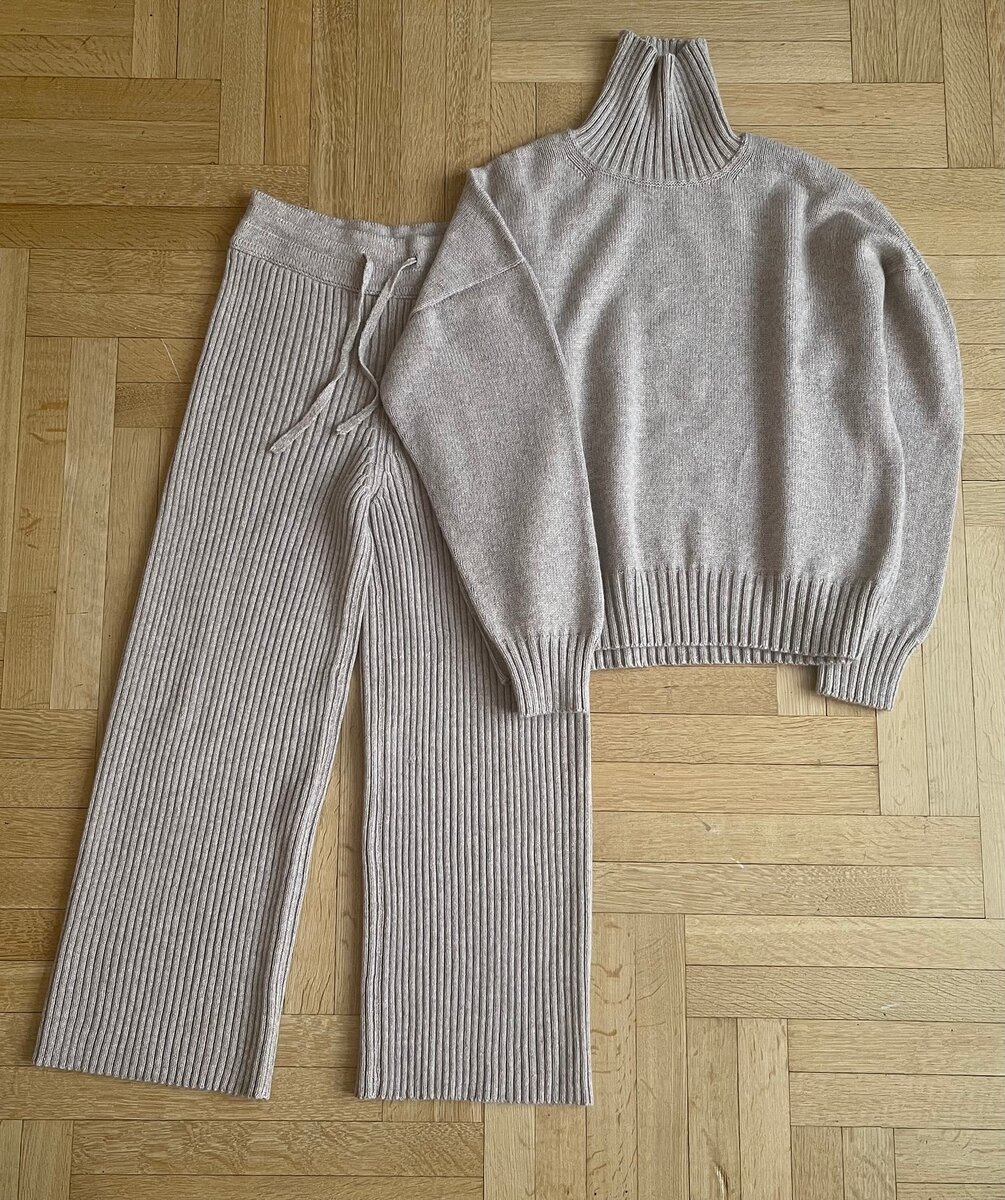 Работа моей подписчицы. Брючный костюм для подростка, брюки связаны по МК №40 "Брюки-кюлоты резинкой 2х1", а верх по МК №61 "Джемпер оверсайз с арочным вырезом":