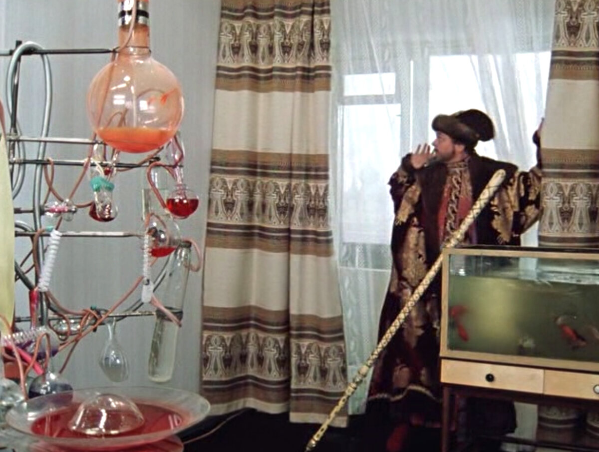 Не знаю причину того, почему интернет-издания именно сейчас решили напомнить зрителям о давно известном киноляпе в фильме «Иван Васильевич меняет профессию». Некоторые всерьез пишут в своих февральских статьях, что нестыковку обнаружили только спустя 50 лет после выхода кино. Напомню, что фильм появился в 1973 году и зрители сразу полюбили его как за сюжет, так и за игру звездного актерского состава. СМИ писали про этот новый киноляп и в ноябре 2023 года. Замечали его и раньше, просто не каждый считает своим долгом сообщать о найденных ляпах всему интернету. Новым киноляп точно не назовешь, но малоизвестным - можно. Что же это за неточность в фильме «Иван Васильевич меняет профессию»? Помните фрагмент — Иван Васильевич прячется за шторы, когда в квартиру входит Зинаида? При царе вода в аквариуме мутная, а колбы в машине времени — прозрачные. Но с появлением в кадре героини Натальи Селезневой, в аквариуме появляются водоросли, а вода становится чистой. Также меняется расположение и сте