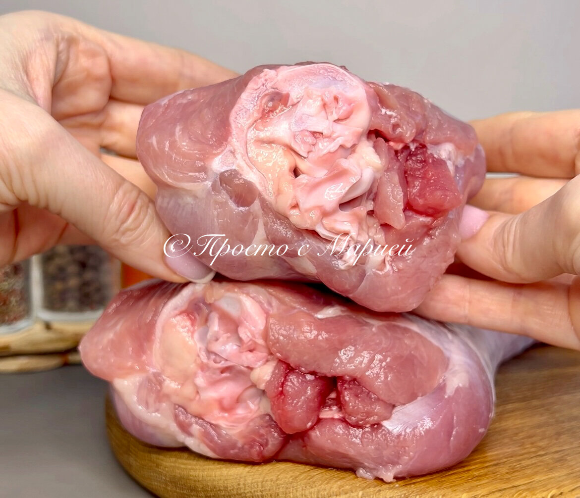 Сейчас самое время для этого рецепта! И знаете почему? Цена на куриные голени взлетела до небес, а индюшиные на их фоне выглядят вполне себе доступно. Это когда такое было вообще??? Ну, по крайней мере в нашем уездном городе N ситуация именно такая. А у вас как??? Привет, друзья! Вы на канале «Просто с Марией», и, как все уже поняли, готовить мы сегодня будем индюшиные голени. Причём без предварительного маринования и каких бы то ни было танцев с бубном. Однажды в комментариях мне написали, что голени индейки — не самый удачный выбор для приготовления. Мясо суховато (с чего бы это?), внутри много сухожилий (ну да, и что?), а кости настолько огромны, что игра просто не стоит свеч. Ещё как стоит! Особенно по этому рецепту. Давайте расскажу! 📌 НЕОБХОДИМЫЕ ПРОДУКТЫ: ✔️Голень индейки — 2 шт. общим весом 1-1,2 кг ✔️Соль — по вкусу ✔️Черный молотый перец — 1/2 ч.ложки ✔️Тимьян сушёный — 1/2 ч. ложки ✔️Сливочное масло — 30 г. КАК ГОТОВИТЬ: Голени индейки моем, обсушиваем бумажными пол