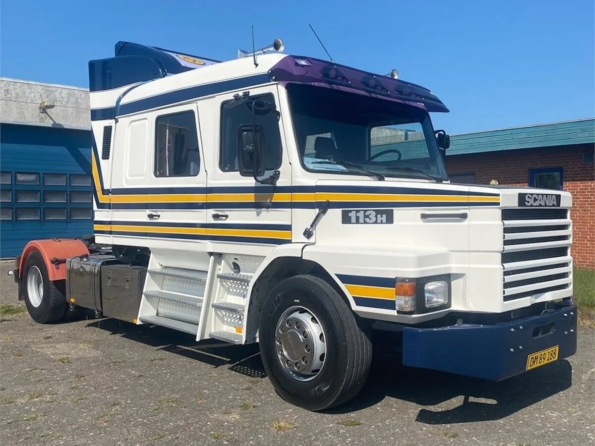 В середине прошлого года на аукционе в Дании продавали очень необычный тягач Scania T113 с огромной удлиненной кабиной. За него просили 26 тысяч евро, или около 2,6 млн рублей по текущему обменному курсу. Его уникальная удлинённая кабина имела три двери и могла вместить до 8 человек. Этот Scania 113H вышел из ворот завода в 1991 году в виде обычного седельного тягача с кабиной со спальным отсеком. Его приобрела шведская транспортная компания ASG, которая помимо традиционных перевозок также предоставляла услуги экспресс-доставки. Именно этот факт тесно связан с удлинённой кабиной: сейчас объясним. В 1990-х годах законодательство страны ограничивало максимальную скорость грузовиков до 70 км/ч, тогда как автобусы могли достигать скорости до 90 км/ч. Именно тогда людям в ASG пришла в голову блестящая идея взять грузовик, увеличить его длину, добавить больше сидений, таким образом превратив его в... автобус. План удался: грузовик был классифицирован как автобус и теперь мог перемещатьс