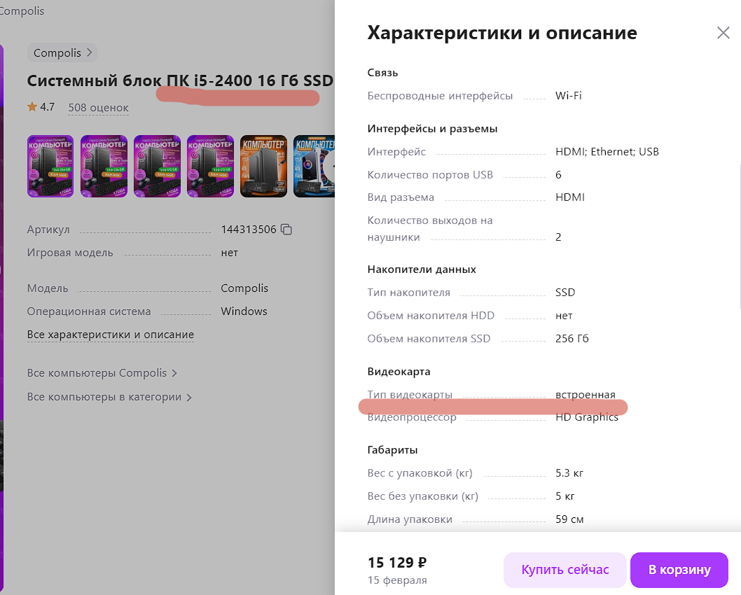На написание натолкнула тема https://dzen.ru/a/Zcks7eE7JDS9nFTn как продать ПК на авито, я же хочу разобрать как избежать большинства проблем с покупкой. Во первых нужно определиться с ценой, народ у нас не богатый и продажа БУ вещей процветает. Какой суммой мы располагаем? Если от 40 000, то лучше брать новый, с гарантией. Обратиться к друзьям, родственникам и вам накидают конфигурацию под ваши задачи. Предположим что ПК нужен как медиацентр, серфа в интернете, возможно для дистанционного обучения школьника, или погонять в танчики отцу семейства. Что подойдет? Офисник с видеокартой начального уровня. Для понимания цен заглянем на Валберис, там тысячи продаж таких пк и куча отзывов.