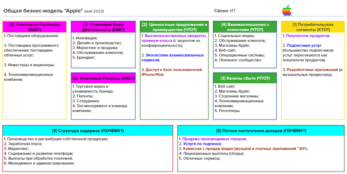 Давайте взглянем на канву бизнес-модели Apple ниже: