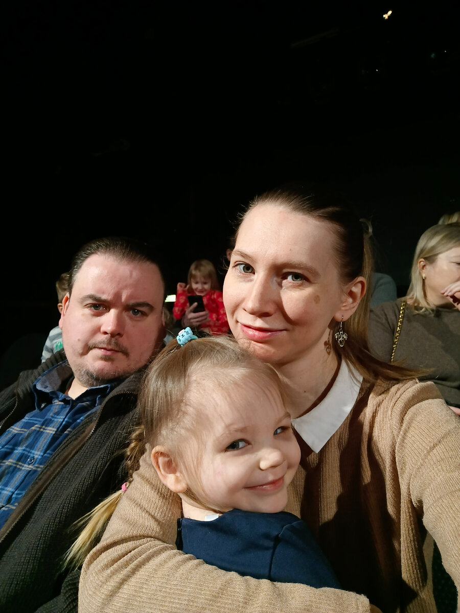 Были всей семьёй в Новом Драматическом театре на спектакле " Трям, здравствуйте " по мотивам мультфильма в эти выходные. Оливе очень понравилось . Весь спектакль она внимательно следила за происходящим . В конце спектакля был небольшой интерактив для детишек( загружу в следующем посте)