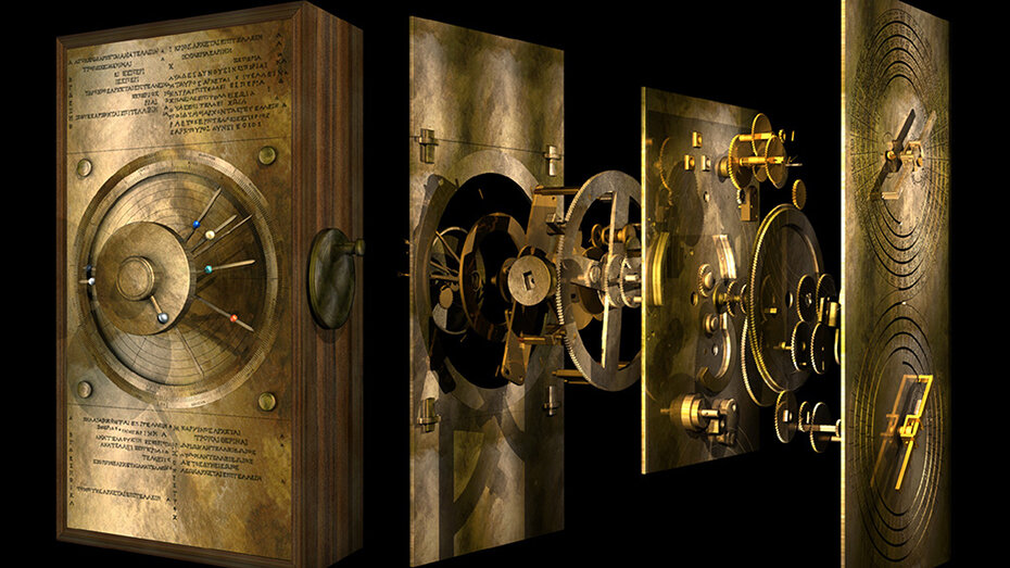 Есть в Эгейском море между островами Крит и Пелопоннес остров Антикитера, возле которого в 1900 году обнаружили римский античный корабль. Среди множества поднятых с него на поверхность артефактов оказалось довольно сложное по конструкции механическое вычислительное устройство, собранное предположительно во второй половине 2 века до нашей эры. Первые же попытки изучить прибор показали, что он гораздо сложнее, чем все прочие известные астролябии того периода. Хранится же он в Национальном археологическом музее в Афинах. Согласно исследованиям устройство, размером с небольшой ящичек состояло из не менее 37 бронзовых шестерней, из которых уцелело 30. Изначально они находились в прямоугольном деревянном корпусе, на бронзовых передней и задней панелях которого были размещены циферблаты со стрелками. Как выяснилось, Антикитерский механизм представлял собой, собственно, календарь, а также астрономическое, метеорологическое, образовательное и картографическое устройство. Это - самый древний обр