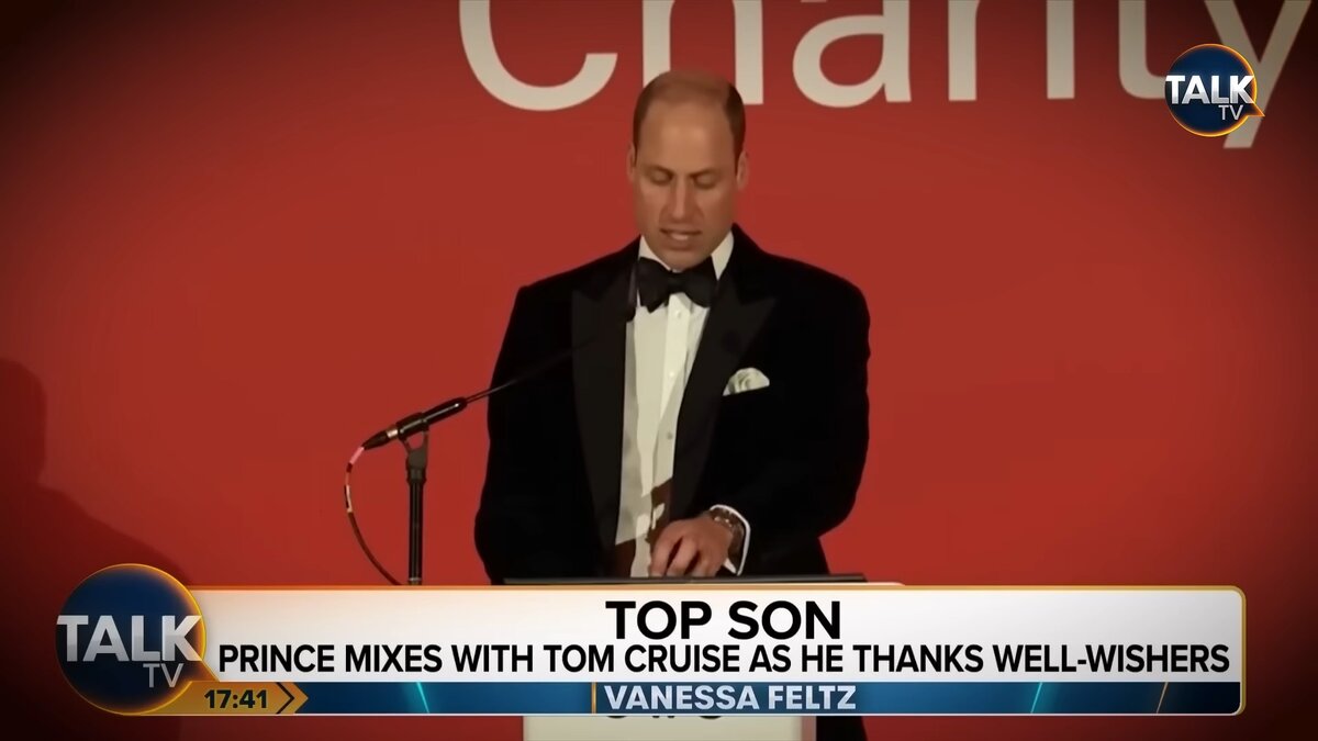 В своей речи принц Уильям поблагодарил публику за добрые пожелания в адрес своей жены Кейт и своего отца Карла, особенно в последние дни. Он сказал, что это многое значит для них всех. Он также пошутил, что последние несколько недель были сосредоточены на медицинских вопросах, поэтому он решил прийти на мероприятие воздушной скорой помощи, чтобы отвлечься от всего этого. Он еще пошутил про Тома Круза, который был на вечере, и предложил ему не угонять новые вертолеты.