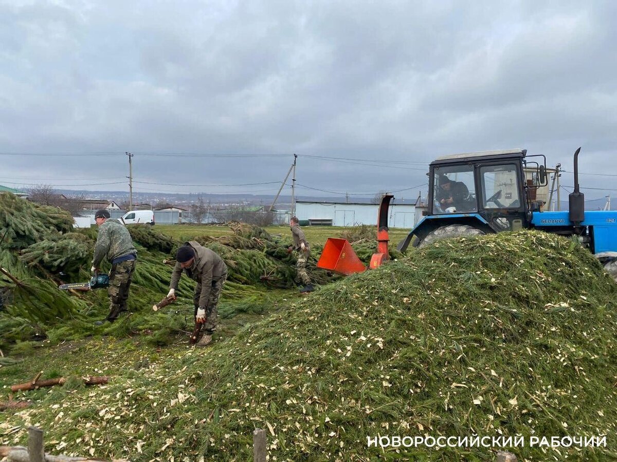 В зоопарке под Новороссийском новогодние елки превращают в корм и щепу для дорожек
