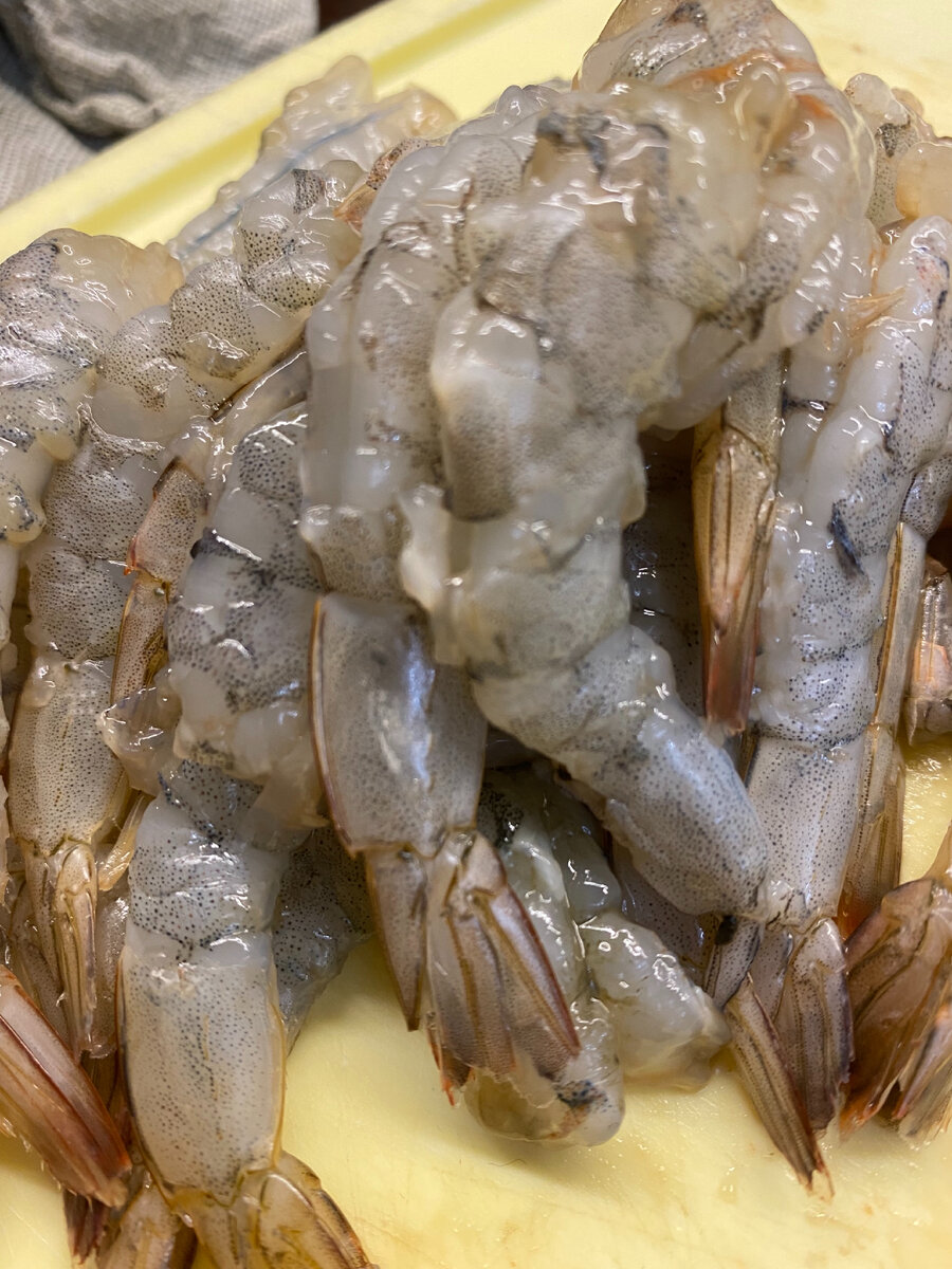 Ингредиенты: ✅Креветки аргентинские, не вареные - 300 гр ✅Чеснок - 4 зубчика ✅Стебли петрушки ✅Специи - Соль, смесь перцев ✅Сливочное масло ✅Сок лимона Рекомендую правильно выбрать креветки, обычные королевские вареные не подойду, они априори будут «резиновыми» от термообработки. Первоначально даём креветкам разморозиться при комнатной температуре Чистим хитин до хвоста, убираем кишку, я воспользовался зубочисткой Отправляем чищенные креветки в кипящую воду ровно на 30 сек (не более), этим мы дадим белку свернуться Мелко нарезаем чеснок и стебли петрушки Хорошо прогреваем сковородку, добавляем сливочное масло, одновременно закидываем креветки, петрушку и чеснок Жарим ровно минуту, постоянно мешая и переворачия Перед подачей сбрызгиваем лимонным соком Не мучайте этот замечательный продукт и готовьте креветки правильно, они не любят долгую термообработку А как вы готовите креветки? Делитесь своими рецептами в комментариях 👇