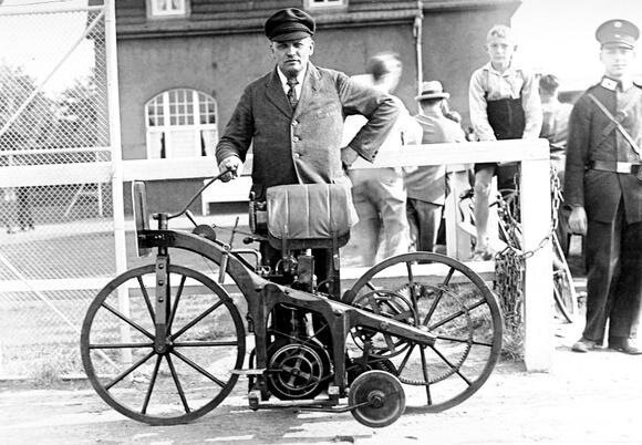 С тех пор, как в 1885 году компания Daimler изобрела и изготовила первый в мире мотоцикл с бензиновым двигателем, развитие мотоциклов на протяжении более 100 лет переживало взлеты и падения. Оригинальный мотоцикл, который представляет собой реалистичный дизайн, хранится в Музее науки и техники в Мюнхене, Германия, и является первым в мире мотоциклом, запатентованным немецким Даймлером 29 августа 1885 года. Более 100 лет назад бензиновые двигатели находились еще в примитивном и незрелом состоянии, а производство автомобилей находилось на стадии вагонной технологии. Между примитивными и современными мотоциклами существовали значительные различия во внешнем виде, конструкции и характеристиках. Рама оригинального мотоцикла была деревянной. По текстуре древесины видно, что она обработана плотником, колеса также изготовлены из дерева. Внешний слой колес обернут слоем листового железа. Под рамой имеется несколько квадратных деревянных рам, на которых размещен двигатель. По обеим сторонам дере