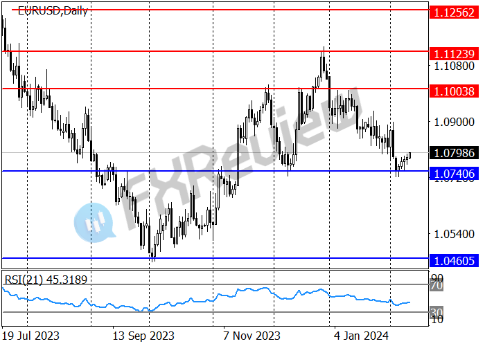 EUR/USD: евро укрепляется на фоне переноса ожиданий первого снижения процентной ставки ЕЦБ