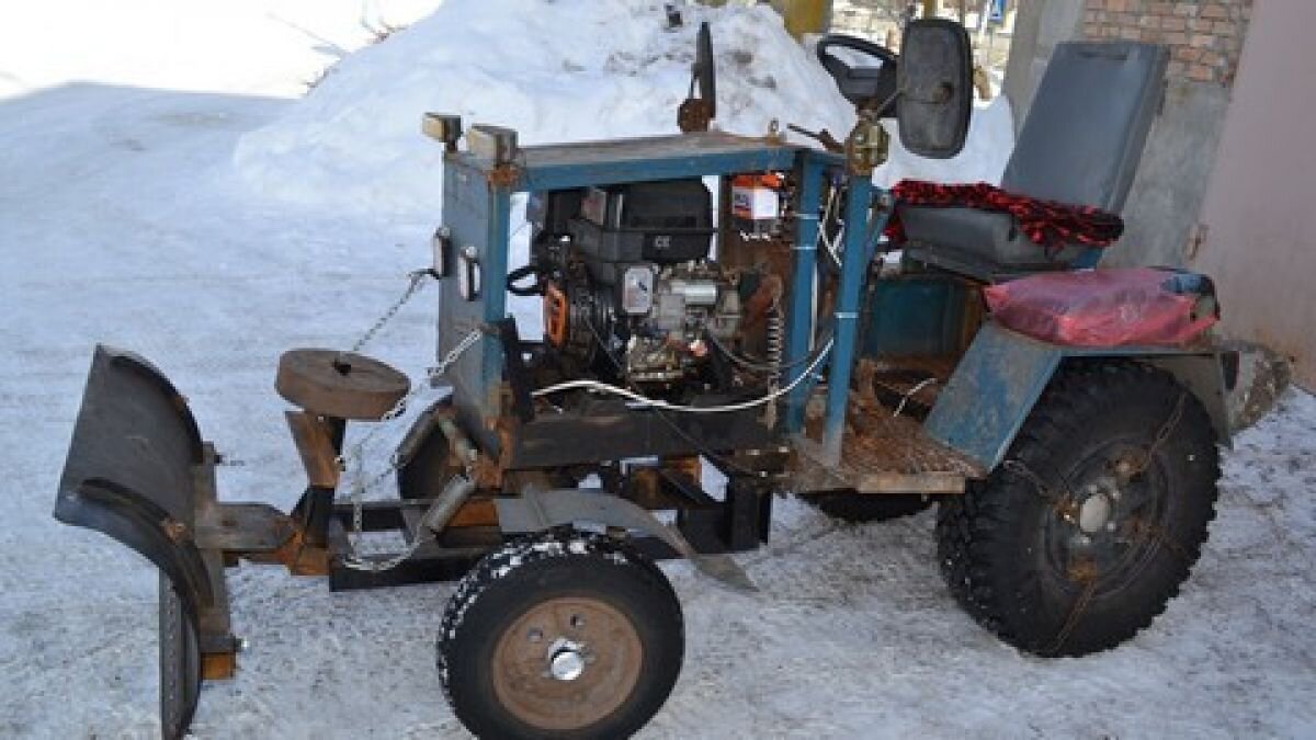 В Пронском районе Рязанской области оператор котельной Малинищинской школы собрал универсальный мини-трактор. Об этом сообщает ИД "Пресса". Владислав Клейман сконструировал машину, которая зимой чистит снег, летом косит травы, а в весной и осенью пашет землю. Владислав с детства любит мастерить и конструировать. По словам мастера, он решил собрать трактор из-за нехватки рук для работы во дворе. На конструирование универсальной машины у него ушло около года. «Вначале приобрел китайский двигатель. А потом в ход пошли разные запчасти от старых автомобилей. Например, колеса – от «Нивы». Сам сварил раму, я ведь профессиональный сварщик. Позже из металла сварил и прицеп. А навесной инвентарь меняю в зависимости от вида работы», - рассказал Владислав.