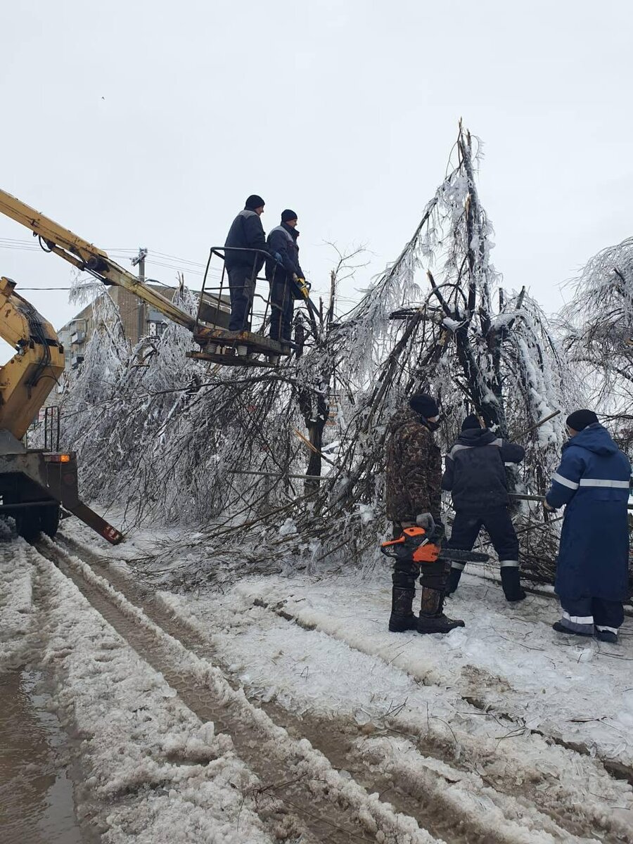 Последствия ликвидации непогоды продолжаются в круглосуточном режиме. Напомним, что Котельниково в ночь на 10-11 февраля после снегопада пережило ледяной дождь. При минусе провода и деревья мгновенно покрывались толстой ледяной коркой, как результат — повсеместные обрывы линий и нарушение электроснабжения. Первыми бить тревогу здесь начали жители, оставшиеся без света, и только потом местные власти объявили ЧС.