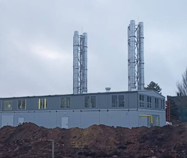 Продолжается монтаж котельной на объекте в Ростовской Области. Завершены работы по установке дымовых труб.