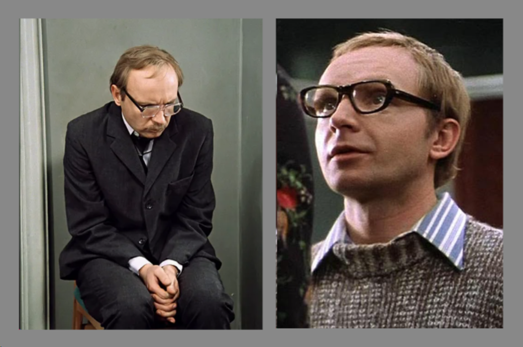 В интернете можно найти не один десяток статей, где сравнивают двух героев Мягкова – Лукашина и Новосельцева. И находят много схожестей (что не удивительно). Я же вижу между ними больше различий, чем сходства. Даже внешне они мне кажутся кардинально разными, несмотря на то, что имеют одно лицо. Кто интереснее внешне Новосельцева изначально делали весьма неприятным мужчиной. Не отталкивающим, но с явными недостатками. Это был замысел Рязанова (в сценарии была добавлена недвусмысленная ремарка с описанием героя: "Замурзанный, неряшливо одетый, опустившийся клерк с мерзкими усиками"). А Лукашин все же современный и даже модный для своего времени мужчина, аккуратный, привлекательный. Немаловажно и то, как себя подают мужчины - Толя понурый, зажатый, неуверенный в себе. Женя смотрится на его фоне намного выигрышнее, так как все же знает себе цену и не погряз в комплексах. Поэтому свой голос я отдаю именно Лукашину. Кто лучше, как работник Лукашина в рабочей обстановке нам не показали. Но