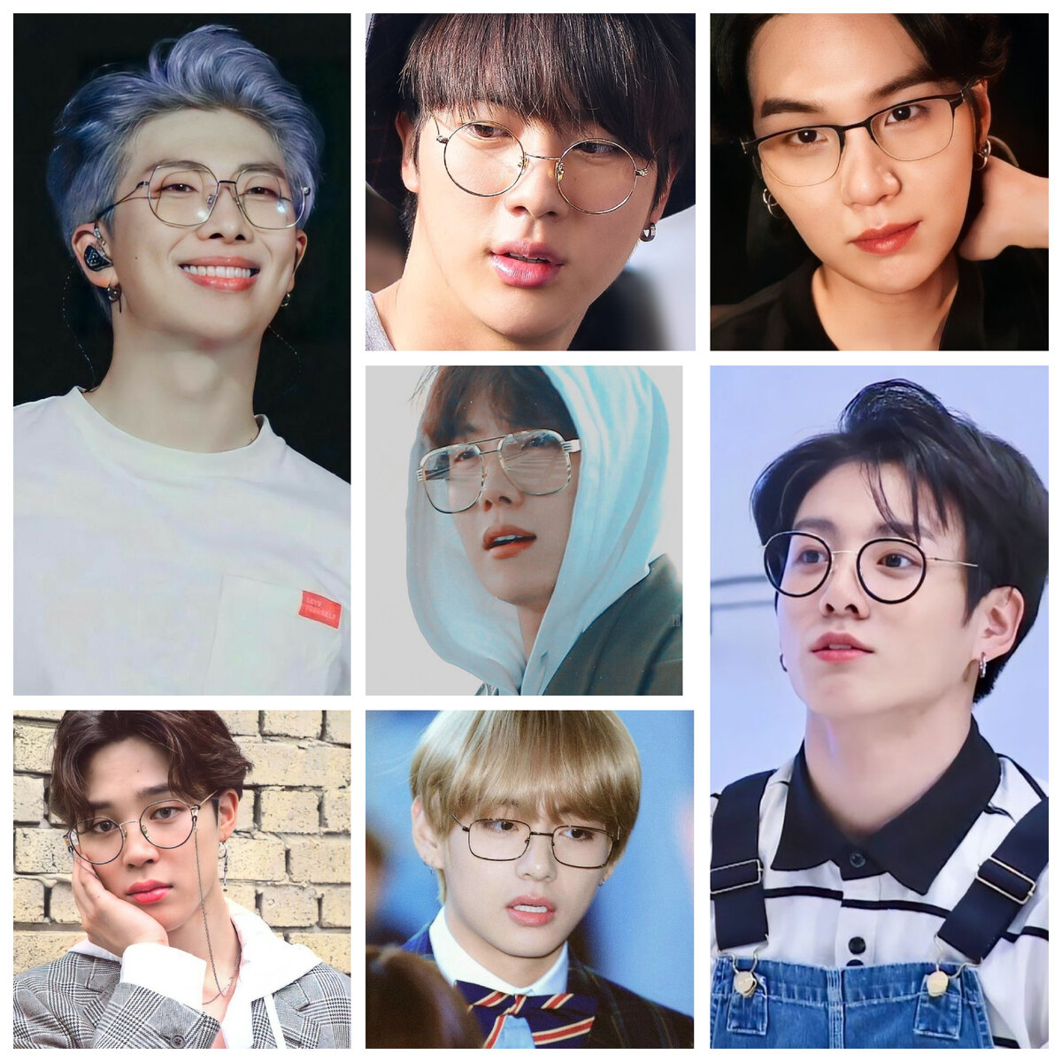 Приближается мой день рождения, поэтому я, как взрослый и ответственный человек, задумалась о том, что надо подарить себе очки. Как известно, большинство корейцев испытывают проблемы со зрением, это практически их отличительная черта. Так что я предпочитаю считать, что я просто немного ближе к ним, чем то, что скоро стану вообще кротом. Но предел есть у всего, конечно. Помните эфир, где Чонгук заглянул к нам весь на домашнем, с растрепанным хвостиком и в очках, а потом снимал и надевал их, потрясенно приговаривая – омо, омоо…Так крольчонок осознал ,что жестко подсадил зрение, так вот я могу это произносить сутками. И вот полезла я подбирать себе варианты оправы, благо, что сейчас ассортимент огромный, а мои натренированные постоянным поиском разнообразных бантанов поисковики, каааак начали предлагать мне всех мемберов в очках. А кто я такая, чтобы отказываться? Я взяла, сохранила, добавила чуточку фото из архивов и получилось красиво, так что таким надо делиться.