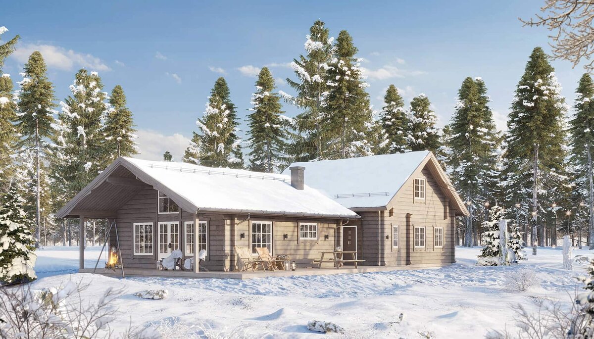 Одноэтажный дом с мансардой включает: большую террасу, две спальни на первом этаже, кухню-гостиную, санузел, душевое отделение, сауну. На мансардном этаже спроектированы две спальни, которые можно обустроить под кабинет или дополнительную гардеробную. Шале с сауной идеально подходит для любителей загородного отдыха, позволяя наслаждаться природой и свежим воздухом, не отказываясь от комфорта городской жизни. Такой дом станет отличным местом для проживания семьи, где каждый найдет занятие по душе и будет иметь возможность отдохнуть после напряженного дня.
