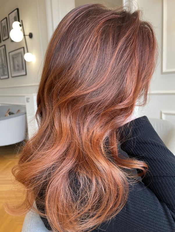 Для достижения эффекта cowboy copper рекомендуется обратиться к профессиональному парикмахеру. Он поможет определиться со своей базой и правильно распределить медные акценты по всей длине волос.