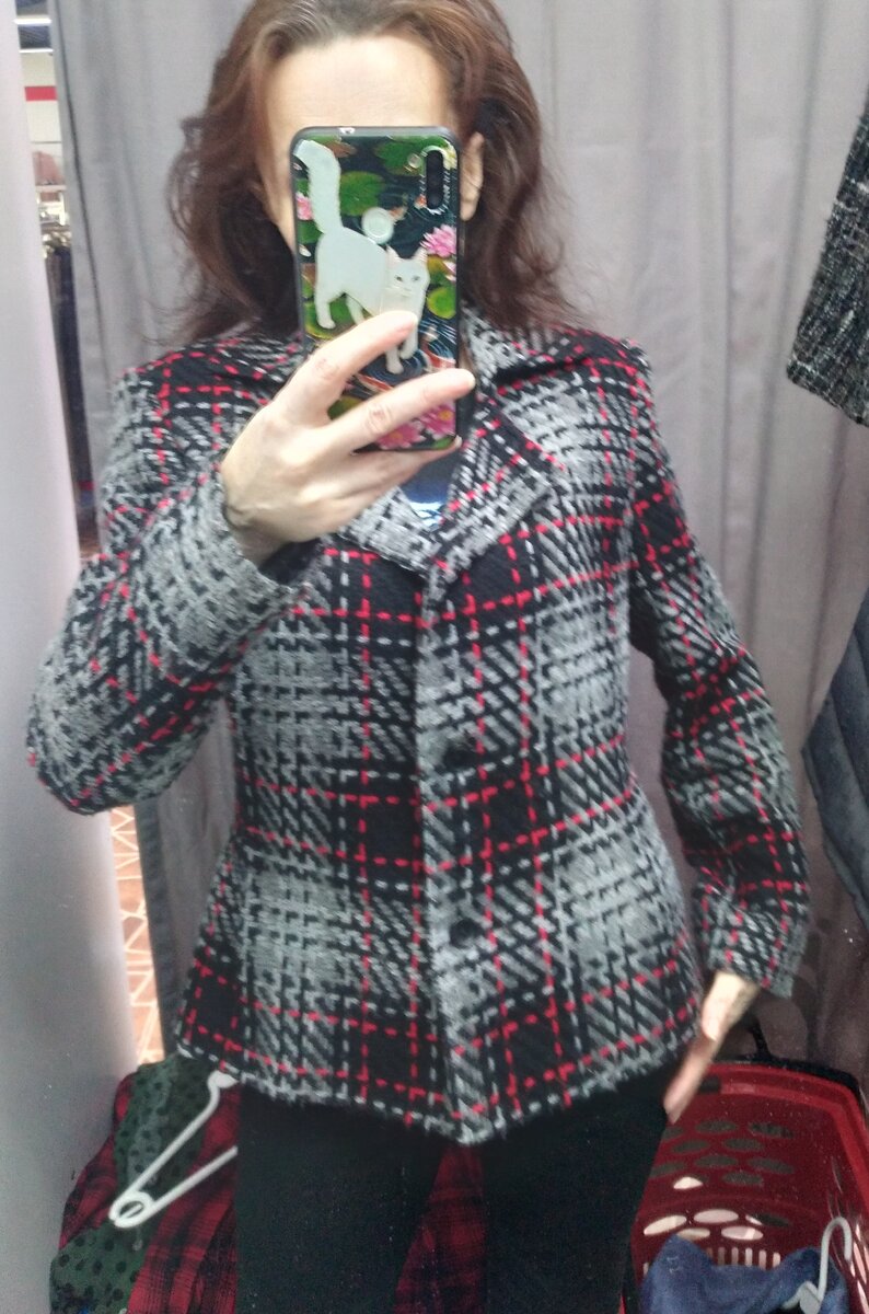 Здравствуйте, когда дорога до секонда перестанет быть квестом на выживание? Если летом дорога занимает 15 минут, то зимой все 30. Небольшая лестница в семь ступенек превращается в аттракцион " как не сломать шею". То прокатишь и исполнишь тройной тулуп, как фигуристка, то слалом, но без лыж((. Надеюсь, что ещё чуть-чуть и с зимними видами спорта будет покончено)). Всё можно было купить со скидкой 80%, цены пишу полные. Тёплый жакетик немного приталенный. Простота кроя прекрасно совмещается с красивой клеткой. Ткань с крупным переплетением, но не рыхлая. Без состава и без бренда. Очень неплохое платье. Платье отрезное по талии, с широкой очень длинной юбкой и накладными карманами. Жаль, что впритык, посмотрела, но пуговицы перешивать там некуда. Обидно, ткань очень приятная, вроде очень мягкой байки. Есть запасная пуговица. Длинный джемпер с большой горловиной и крупными косами. Трикотаж не белый, а немного кремового оттенка. Бывает трикотаж, что и в руках не ощущаешь, такой он лёгкий,