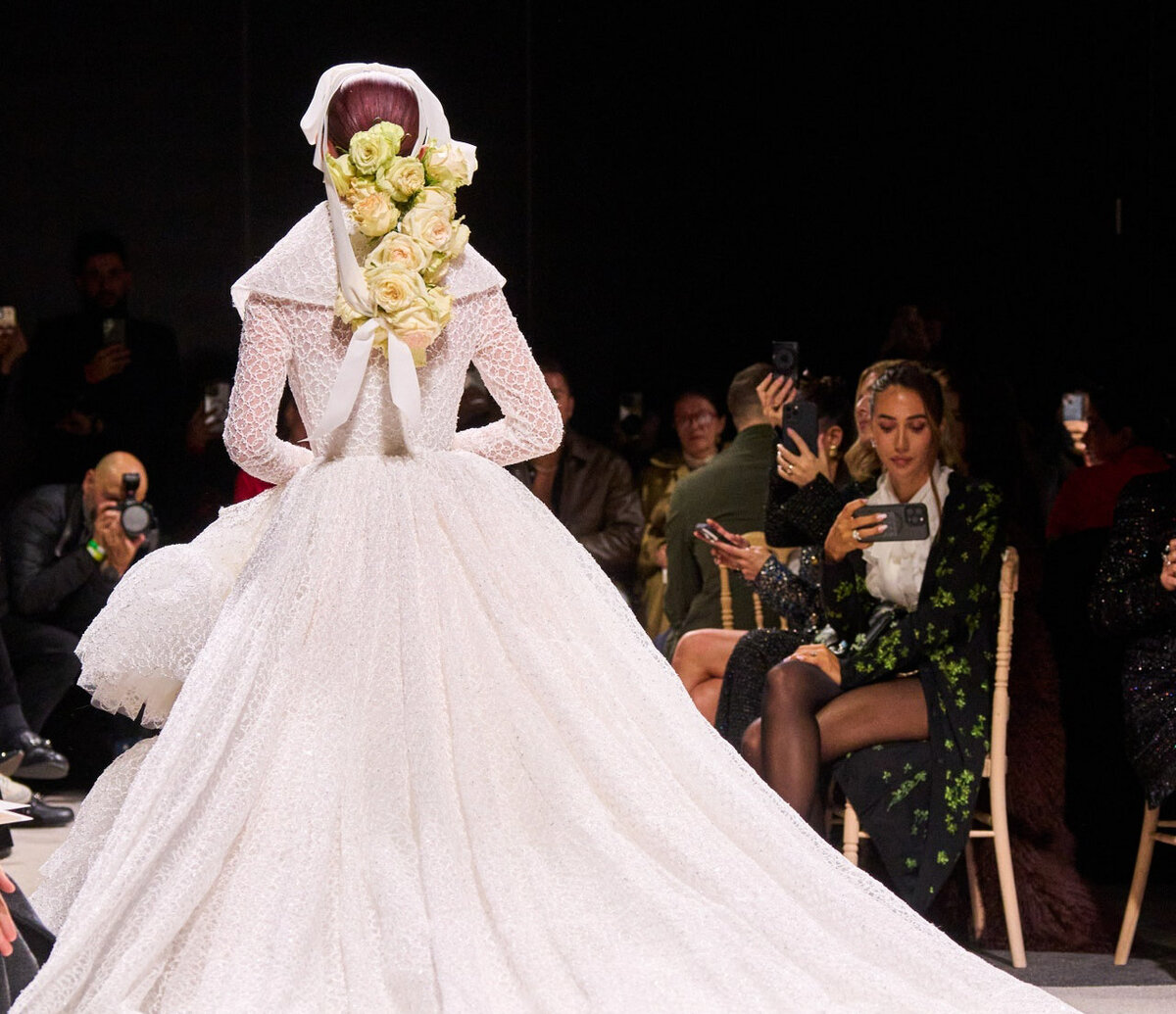 Платья невест на показах высокой моды весна-лето 2024: банты, ракушки, цветы и бахрома