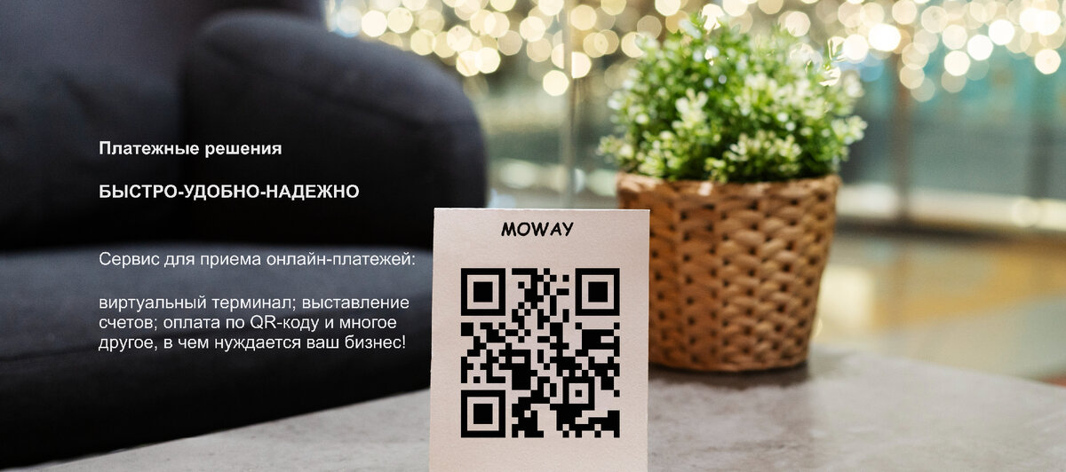 Moway это: ✓ Прием платежей без использования специализированного оборудования и банковского терминала. ✓ Виртуальный терминал; платежные ссылки; оплата по QR-коду и многое другое, в чем нуждается ваш бизнес. ✓ Выставление счёта на оплату за несколько секунд и мгновенное информирование о поступивших платежах. ✓ Простой и понятный сервис, не требует специальных знаний или помощи технического специалиста. ✓ Фискализация без покупки и аренды онлайн-кассы (54-ФЗ). ✓ Современная альтернатива эквайрингу. ✓ Прием онлайн-платежи без лишних затрат и хлопот! Следите за новостями в наших соц. сетях - Telegram и ВКонтакте.