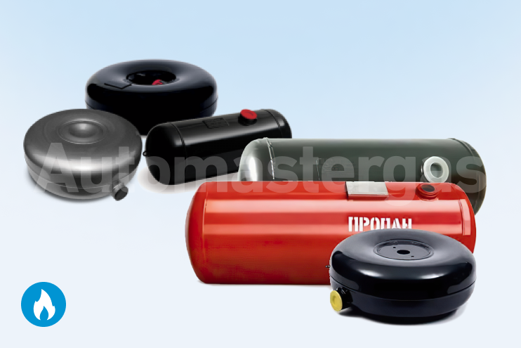Производство изделий регулируется ГОСТ ISO 11439-2014. Они встречаются на большинстве легковых авто по причине соответствия форме ниши для запасного колеса. Для установки достаточно вынуть запаску и поместить туда баллон. Если владелец не хочет использовать место под колесо, то можно разместить емкость внутри салона или снаружи (для этого специально изготавливают модели с наружной и внутренней горловиной).