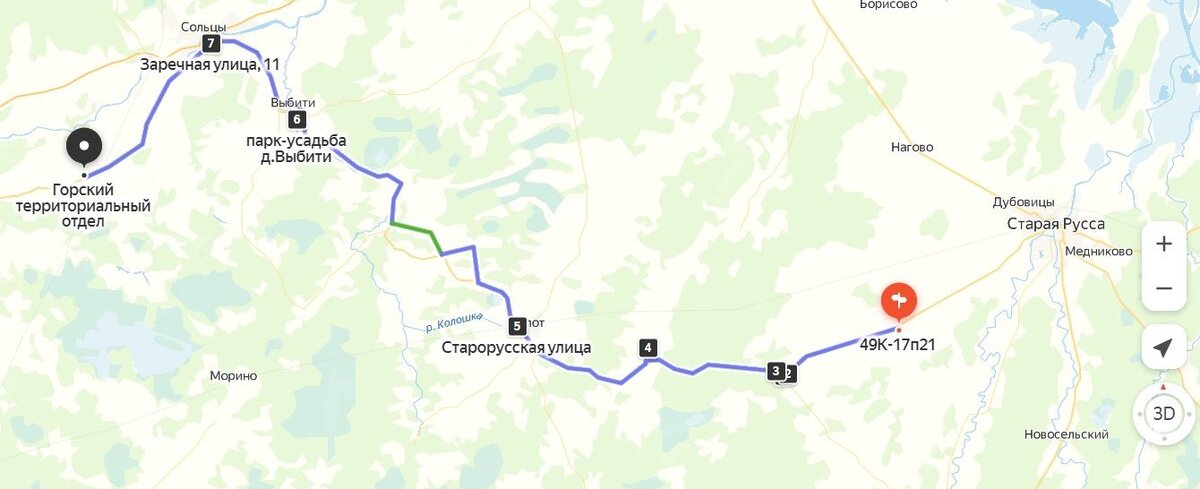 Хилово - родник в дер. Речные Котцы - Порожки - Волот – Учно - родник, дуб Никита и старые туи в парке усадьбы Выбити - Ж/д станция 218 км около Сольцов. 88 км
