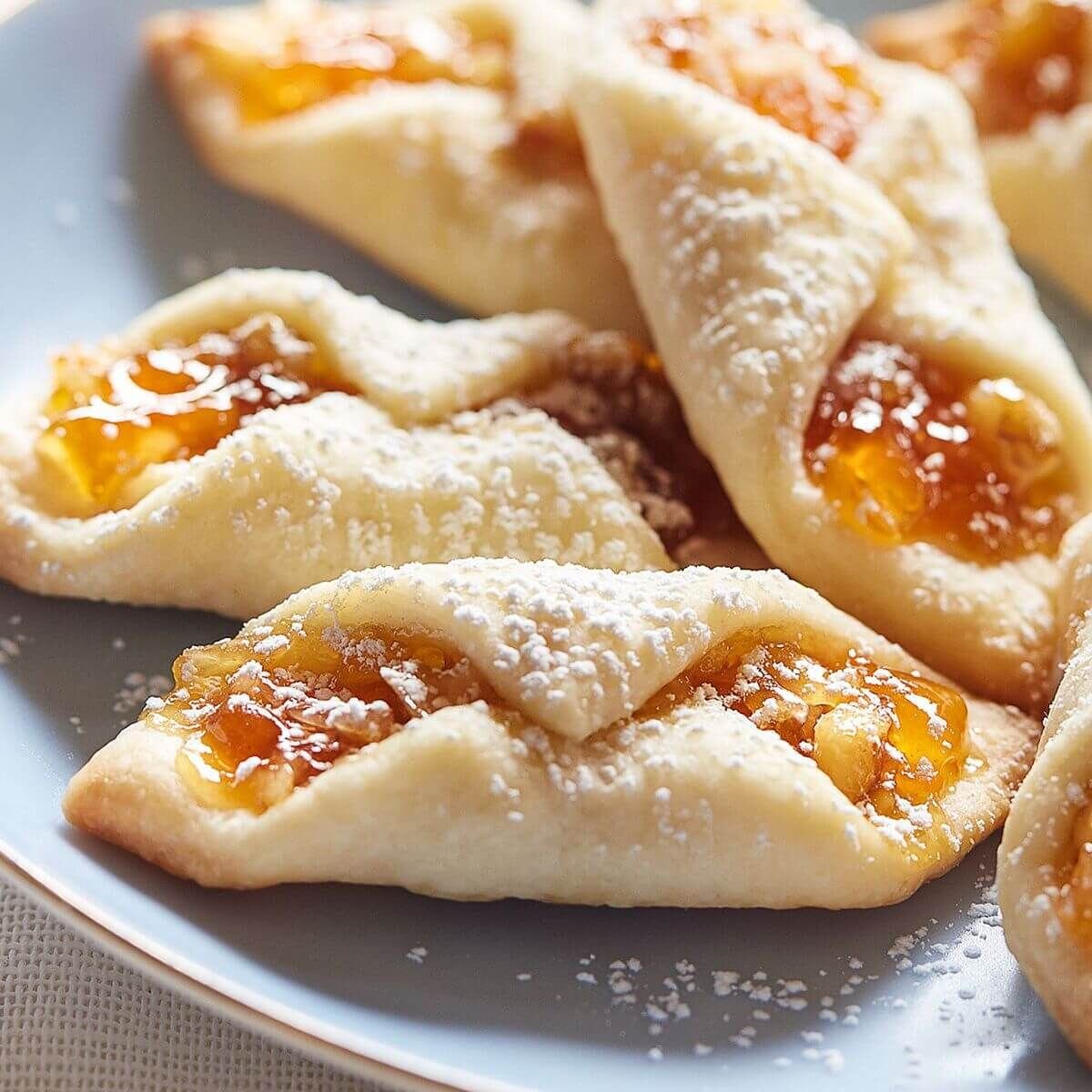 Добавить апельсиновый джем, хорошо перемешать. Каждый кусочек теста раскатать в лепешку толщиной примерно 2 мм. Разрезать лепешку на 4 треугольника.