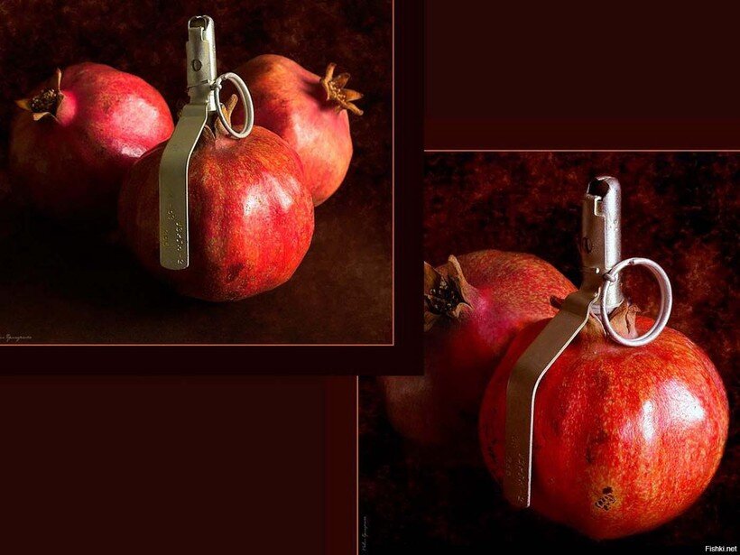 Слова "гранат" и "граната" имеют схожее звучание не случайно. В 16 веке во французской армии появилось метательное оружие, которое стали называть "граната" (по-французски оба слова одинаково — grenade). Это наименование было выбрано из-за сходства формы оружия с фруктом граната, а также из-за того, что разрыв гранаты на мелкие кусочки напоминал многочисленные семена фрукта в его открытом виде.