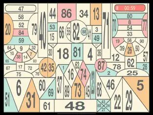 Найдите на этой таблице последовательно цифры от 1 до 90 включительно.