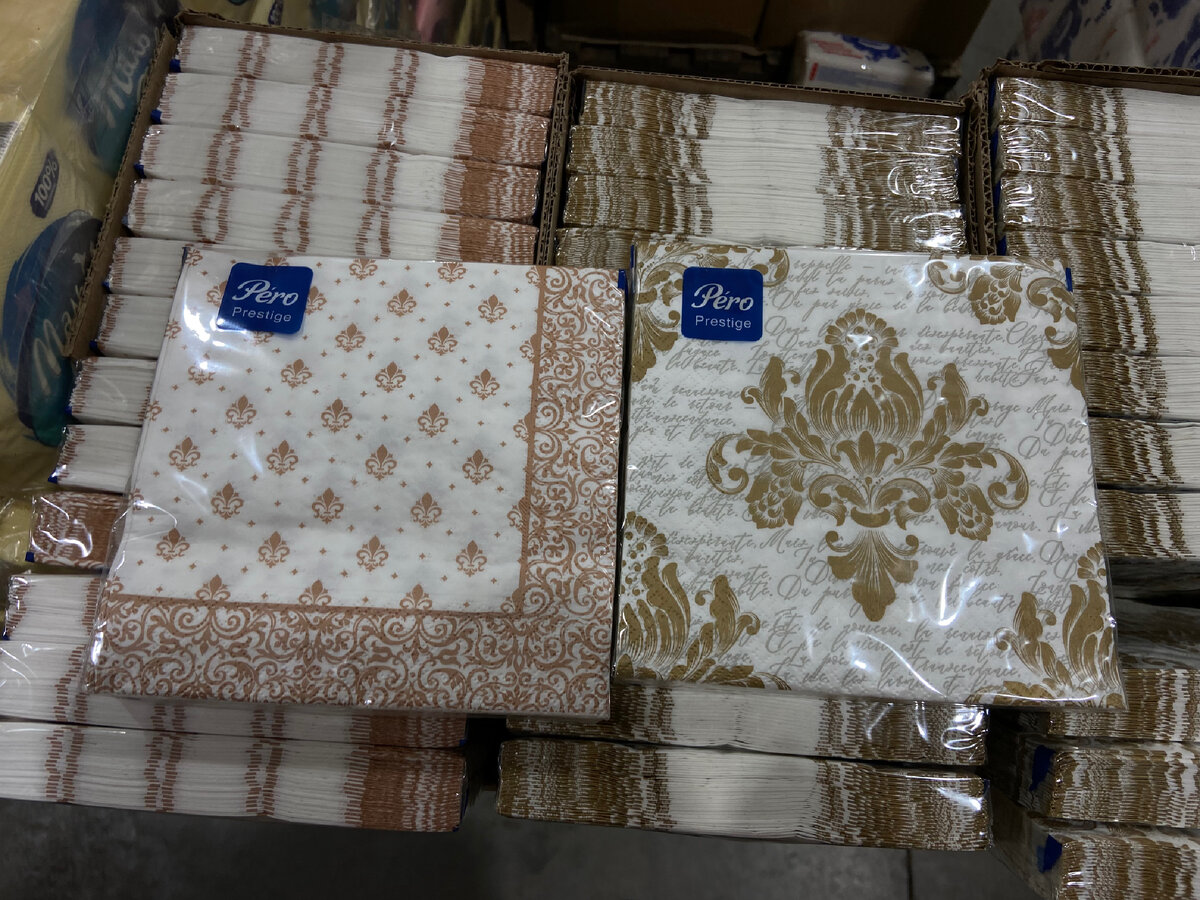 Еще один вариант бумажных салфеток, 250 штук, цена 43,30₽.
