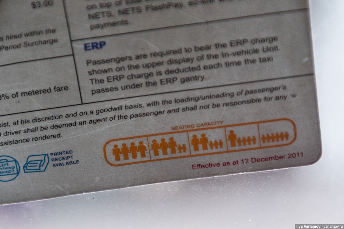 Но день мой начался в Сингапуре! Надо было ехать в аэропорт! В сингапурских такси висит инструкция, объясняющая, сколько людей может ехать в машине. Забавно, куда они собрались шестерых детей сажать? ;)