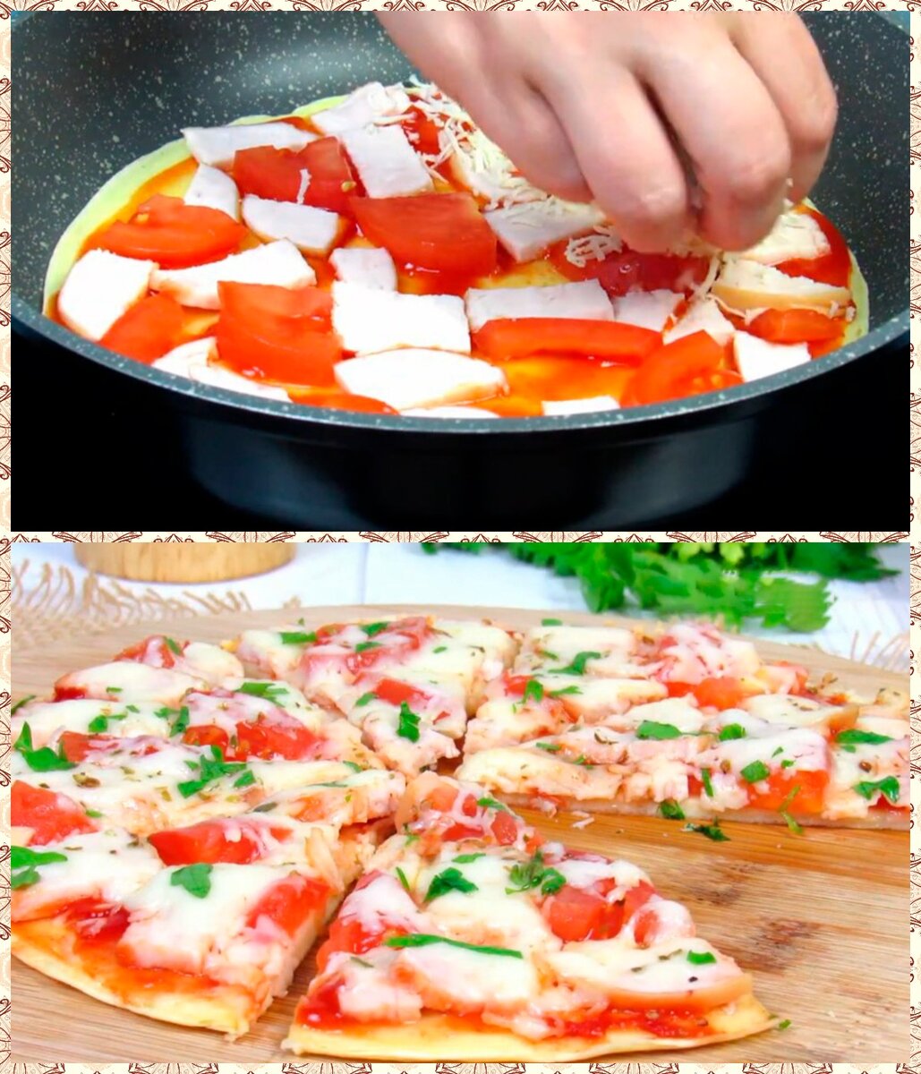 Пицца с ветчиной и помидорами готовится на сковороде буквально за 10 минут и выручит, если нужен быстрый перекус или идеально подойдет в качестве вкусного завтрака. Ингредиенты 🔸Яйцо 1 шт 🔸Сметана 20% 2-3 ст.л 🔸Мука 2 ст.л с горкой 🔸Разрыхлитель ½ ч.л 🔸Соль по вкусу 🔸Ветчина 50 гр 🔸Помидор 1 шт 🔸Сыр Моцарелла 50 гр 🔸Томатный соус 2-3 ст.л 🔸Орегано сушеный 1 щепотка Как быстро приготовить пиццу на сковороде за 10 минут Сначала подготовим начинку. Ветчину нарезаем небольшими тонкими ломтиками. Небольшими кусочками нарезаем небольшой помидор. На мелкой терке натираем сыр. Для теста в миску разбиваем сырое яйцо, добавляем сметану, солим по вкусу и перемешиваем венчиком до однородности. Добавляем муку, разрыхлитель и перемешиваем до однородной массы без комочков. В итоге получаемся тесто, по консистенции напоминающее тесто на блины. Разогреваем сковороду и смазываем ее растительным маслом. Выливаем тесто и распределяем его равномерно по всей поверхности сковороды. Накрываем крышк