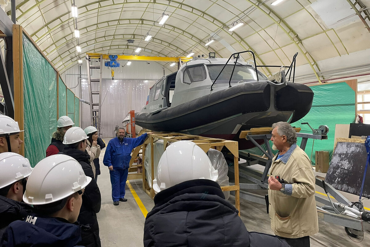 6 февраля студенты Корфака СПбГМТУ профиля «Проектирование и производство конструкций морской техники из композиционных материалов» групп 1318 и 1418 посетили производственные участки ООО «Машиностроительное предприятие «Винета» в Никольском, Ленинградская область. Студентов ФКиО подробно ознакомили с проектами и особенностями технологических процессов, провели по участкам раскроя и подготовки материалов, изготовления оснастки, формования и обработки корпусных деталей, а также сборки и оснащения судов. Производство, несмотря на активное использование полиэфирных связующих, отличается высокой чистотой и соблюдением всех экологических норм. Особенный интерес вызывает у студентов Корабелки композитное производство маломерных судов: лодок и катеров гражданского и специального назначения «Винета-315, 505, 550, 900…». Один из характерных признаков проектов судов компании «Винета» – тримаранная форма корпуса. Отметим, что все проекты судов компании «Винета» полностью разрабатываются на предп