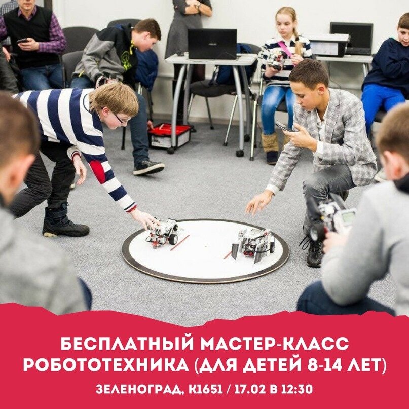 Внимание, Зеленоград! 17 февраля в 12:30 пройдет бесплатный мастер-класс для детей 8-14 лет «Робототехника». Количество мест ограничено, успейте зарегистрироваться. В программе: Обязательно зарегистрируйтесь, чтобы устроители смогли приготовить компьютер для вашего ребёнка.