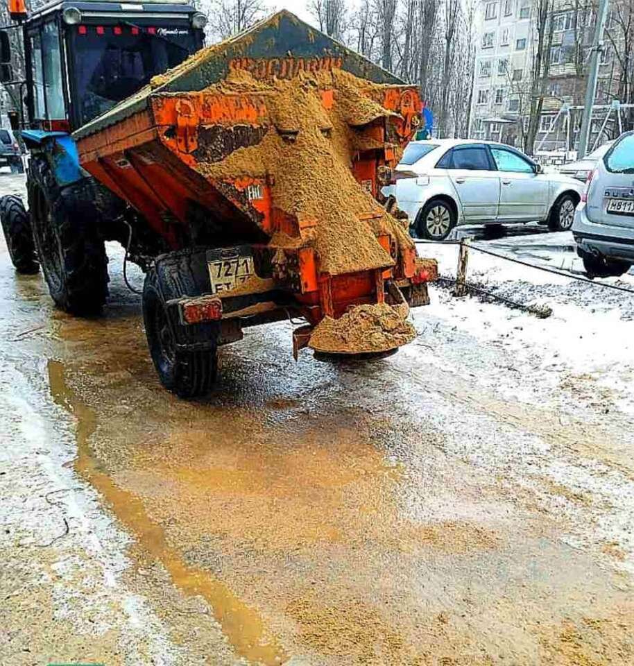 Для борьбы с обледенением, которое возникло из-за дождя при отрицательной температуре, было израсходовано почти 1,2 тысячи тонн пескосмеси.