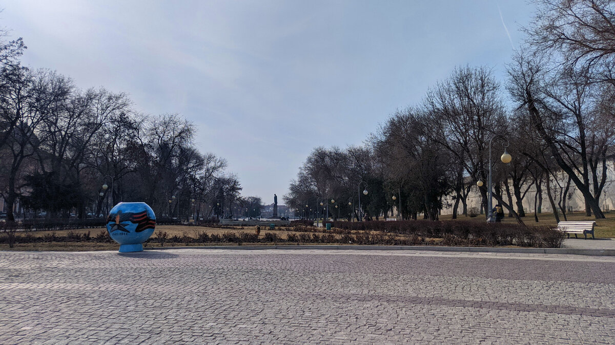 После прогулки по центральной улицы Советской давайте теперь пройдем по не самым туристическим местам Астрахани. Для этого далеко уходить не надо, надо вернуться к Кремлю. И там, недалеко от Кремля, как раз и можно прогуляться по атмосферному району. Сначала нам нужно оказаться на Площади Ленина, которая прилегает к Кремлю с южной стороны. Главная площадь города. На которой, естественно, установлен 17-метровый памятник Ленину Работает 8 фонтанов, главные из которых работают по краям площади. Дом за фонтаном поближе. Тут сейчас работает центр занятости Но данная местность сейчас так выглядит. А давным-давно, в 16 веке, с южной стороны к стенам Кремля подходили болота. А на месте площади Ленина были солончаки. Они затапливались в половодье. А что не затопило – там разбивали огороды. Но в 1730-е годы территорию осушили, рельеф изменили и здесь построили монастырь. Вокруг которого стали селиться люди. Со временем это место превратилось в Житный двор. Который был огорожен каменным забором.