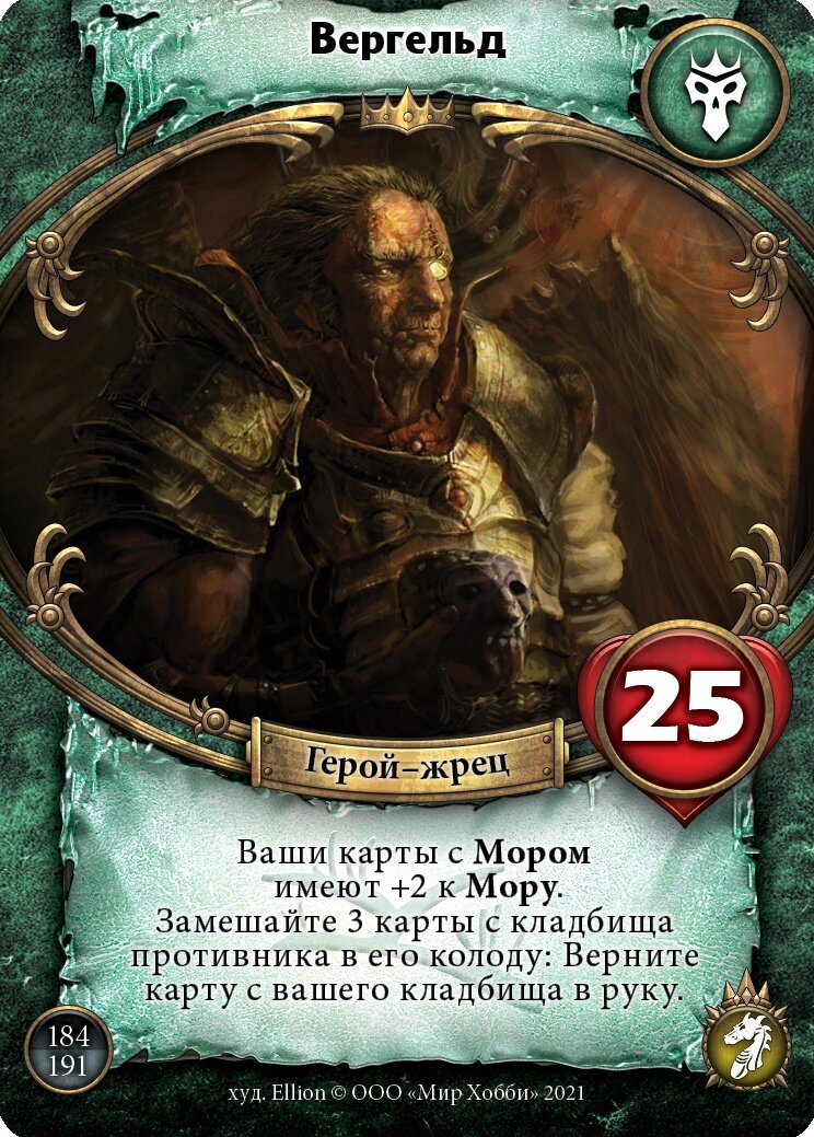 Доброго времени суток! В рамках рубрики "Аналитика" я делаю обзоры на колоды игроков, которые по итогам турнира попали в топ-3. Обзор на турнир. 3 место - Вергельд Основная колода: Дополнительная колода: О колоде Контроль с возможностью прокручивать "Навершие" несколько ходов подряд. Душка через "Бог грома" и "Грязные слухи". В сайде есть мини-комбо "Эриния" + "Врата Ихвэ", против условного леса, при 2 эриниях на столе можно получить бесконечно много монет, разыгрывая "Чешуя дракона" или же против степей (Шакси) бесплатно разыгрывать заклинания из ее кладбища и т.д. Ключевые карты Если рассматривать комбо составляющую, тогда это все карты существ с мором, которые наполнят кладбище противника и "Навершие", которое мы постоянно будем поднимать с помощью способности Вергельда. Итог Контроль колода с комбо в виде почти бесконечных доп. ходов, однако довольно медленное. Боимся агры в виде Шакси на заклиниях или постоянного замешивания кладбища противника. Что я могу предложить к рассмотре